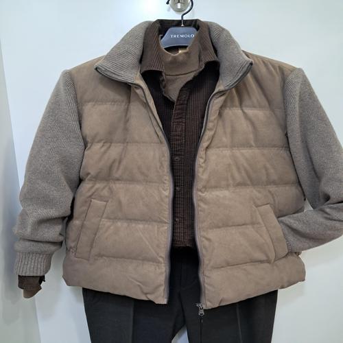 [바쏘옴므]자켓 구스다운 니트배색 스웨이드 점퍼 베이지 Z4UA11-2