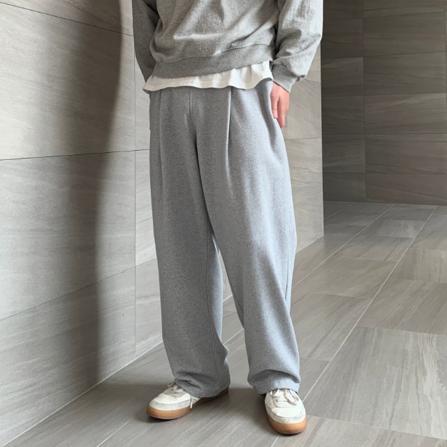 [기획상품,1+1] 두장묶음 빠델 사이드핀턱 벌룬 와이드 트레이닝 스웻 커브드 팬츠 회색 트레이닝팬츠
