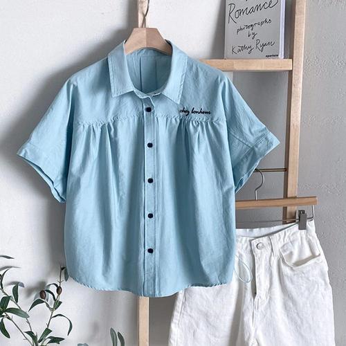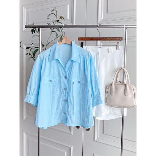 [샵앤]여성 슬릿 카라넥 여름 반팔 블라우스 DGB-WBL-4564-스카이블루