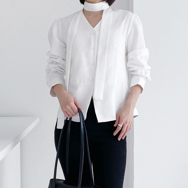 스카프 셋업 폴딩 슬리브 블라우스_PPBLF024S03