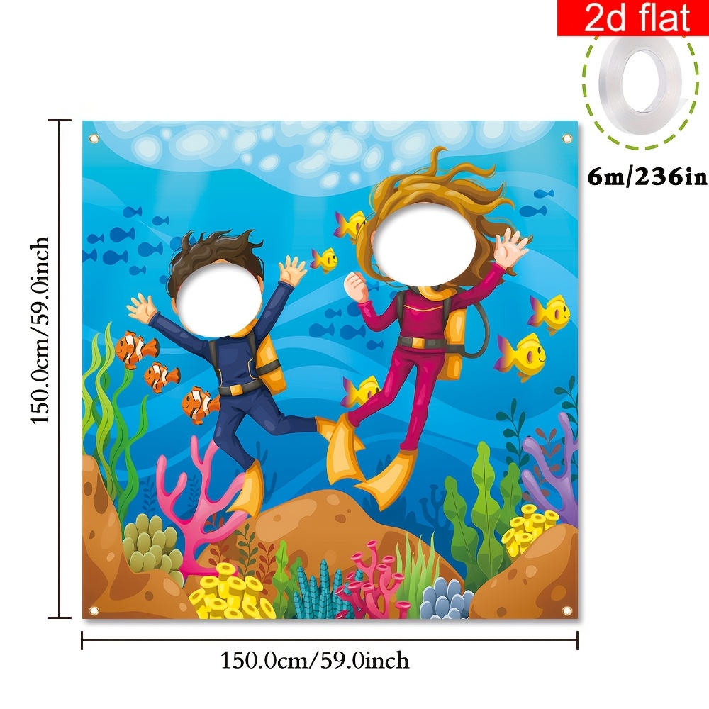 TEMU 2D 플랫 배너, 1개, 아쿠아리움 다이빙 재미 사진 보관함 역할 놀이 파티 배너, 폴리에스터 바다 여름 수영장 파티 테마 사진 보관함 속장 배너, 마스케라드 파티 홈 생일 게임 파티 배너 용품