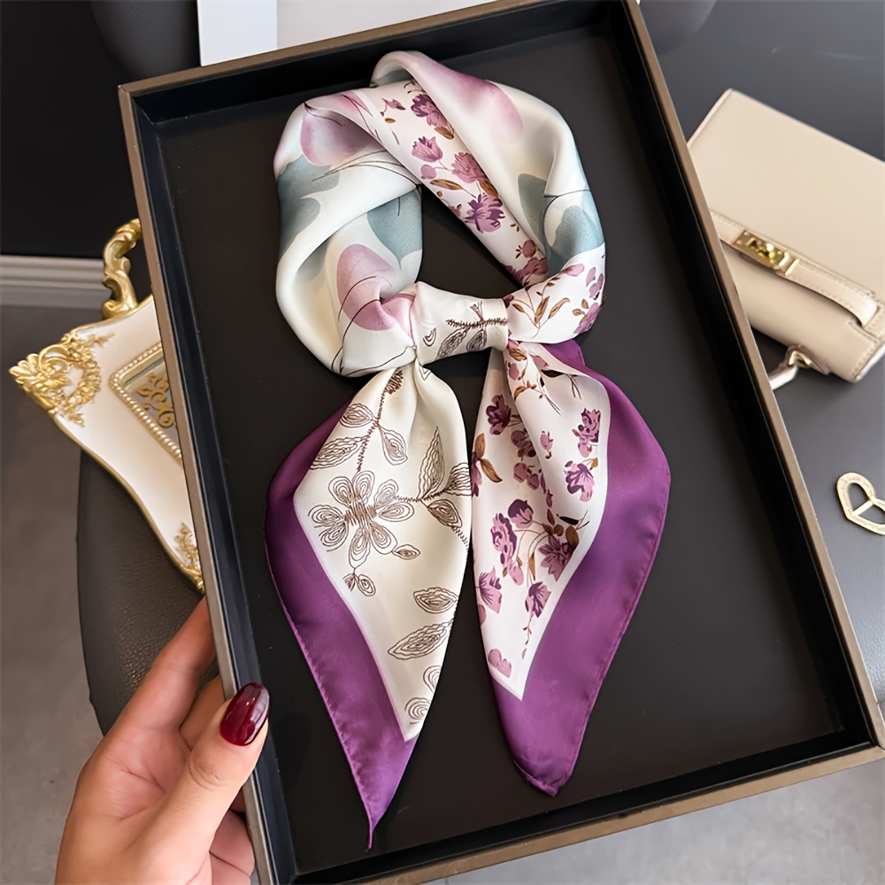 TEMU 우아한 플로럴 패턴 여성용 사각 타월 | 옐로우 & 퍼플, 스카프, 숄, 스웨터 겸용, 사계절 사용 가능, 프린트