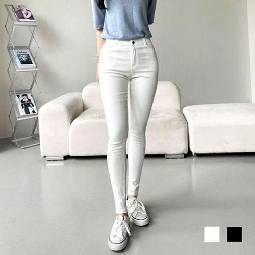 [에이치플러스몰]심플 비카 일상 엘라스틱 스키니 슬랙스 진스키니진검정 여자 화이트컬러
