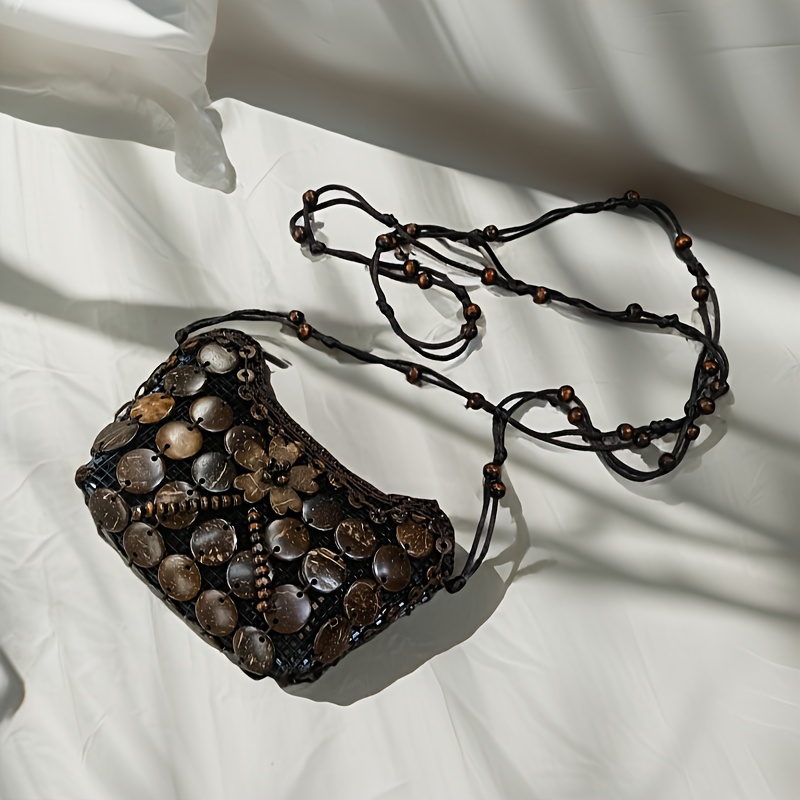 TEMU 새로운 스타일의 유니크한 여성 가방, 에스닉 크로스바디 지갑, 빈티지 핸드메이드 우븐 코코넛 쉘 캐주얼 지갑.