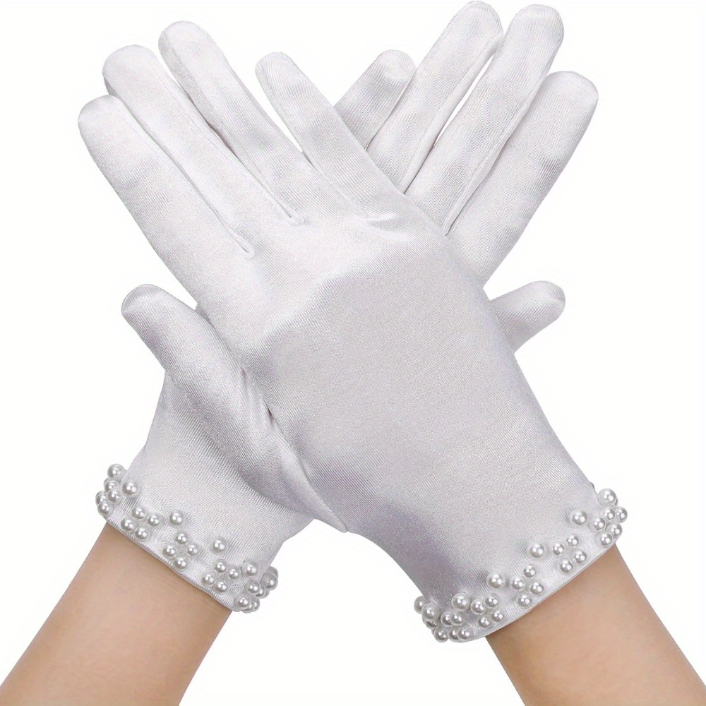 TEMU 여성을 위한 우아한 짧은 실크 장갑 1 쌍 - 반지름 길이의 신혼 장갑, 반짝이는 장식, 실크 질감, 결혼식, 졸업식, 저녁 오페라 및 식사, 결혼식 액세서리, 웨딩 드레스 액세서리, 세련된 디자인, 세련된 장식