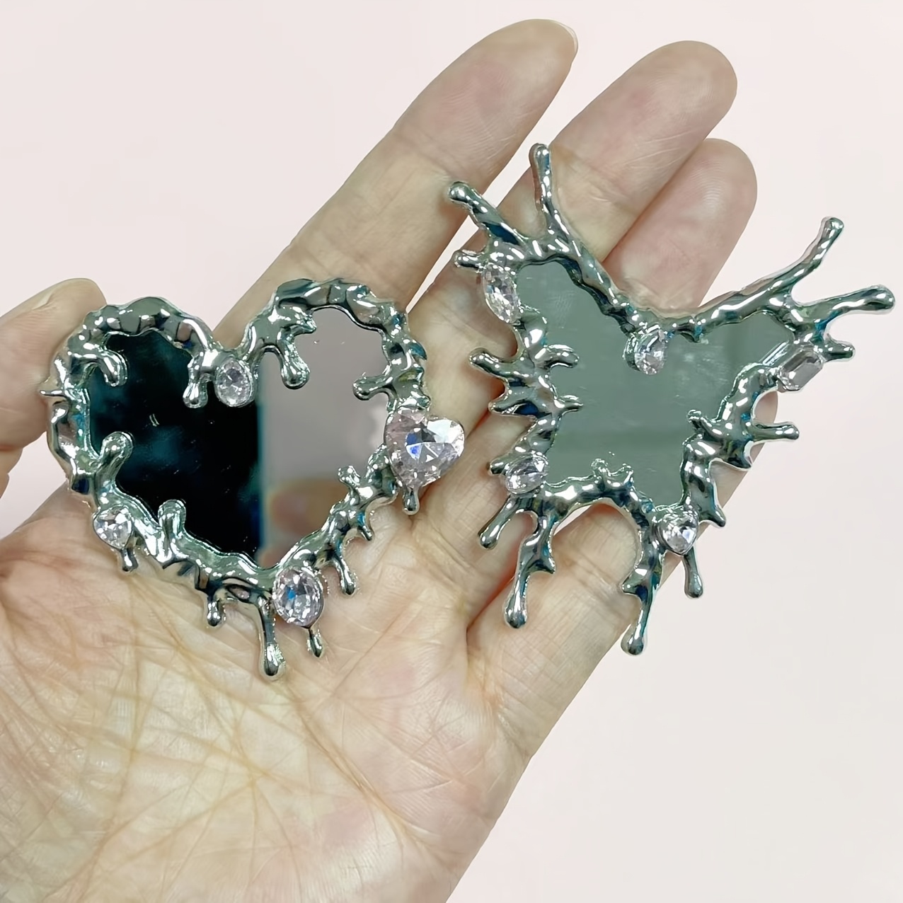 TEMU 2개 세트 크리에이티브 디자인 핑크 라인스톤 물방울 러브 하트 나비 메이크업 미러 폰케이스 장식 참 카와이 플랫 백 DIY 공예