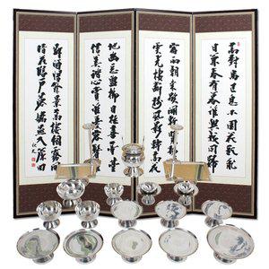 [남원공방] 간소 DG 스텐 제기세트 21P + 4폭 죽절 추사 - 산수화 병풍