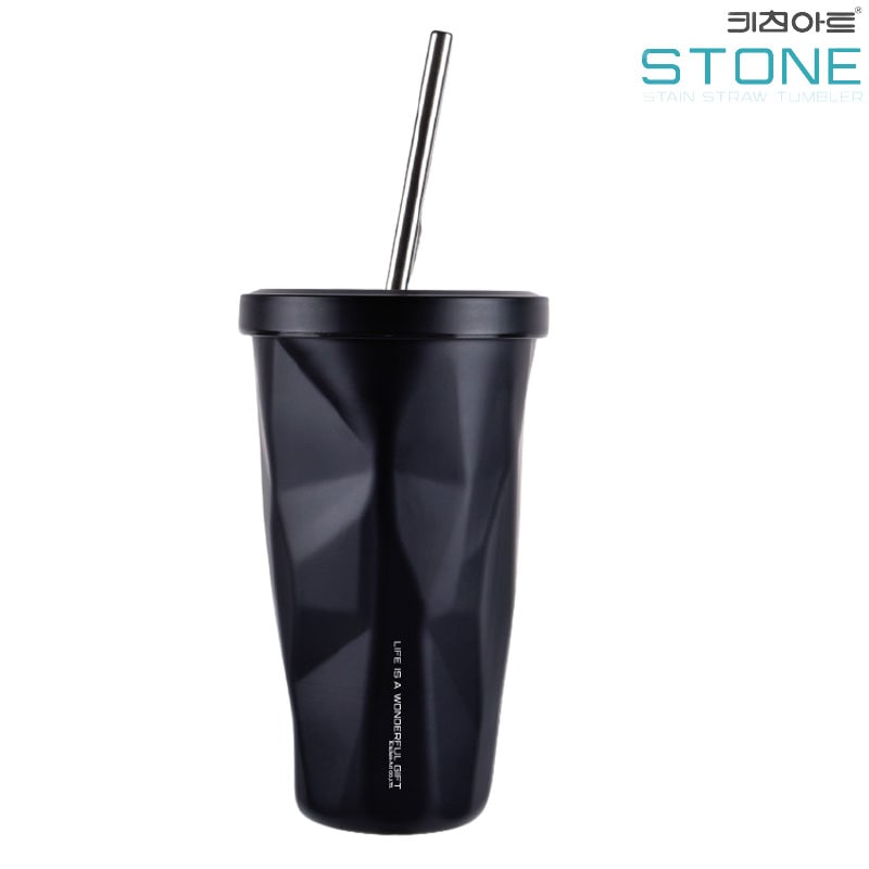키친아트 키친아트 스텐레스 이중구조 스톤 텀블러 500ml (모던블랙) 빨대텀블러 휴대용텀블러