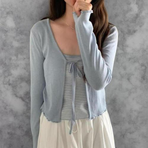 [옷자락] 여자 단가라 나시티 스트랩 긴팔 가디건 세트