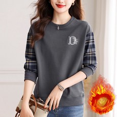 SAHINER 겨울 여성 기모안감 라운드넥 스트라이프 소매 소프트 오버핏 맨투맨 BWY59