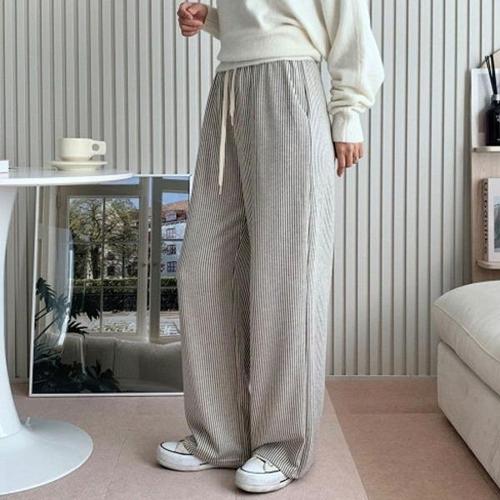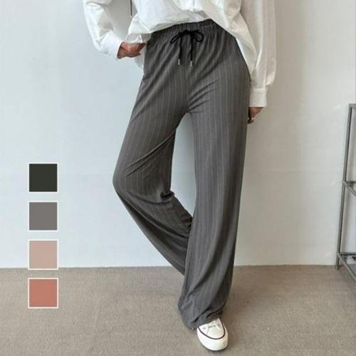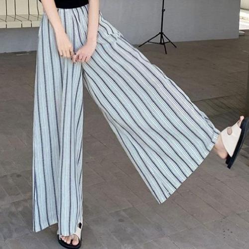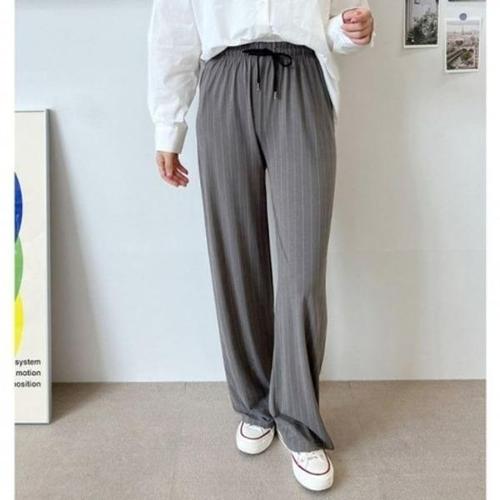 [엄지척]스트라이프 와이드 여자 팬츠 밴딩 캐주얼 심플 바지_19951828_667501