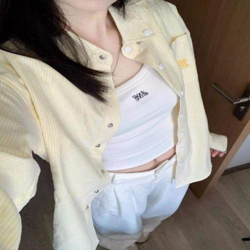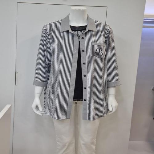 [에이치플러스몰]봄 여름 카라 스트라이프 자수 캐주얼 자켓 긴팔셔츠