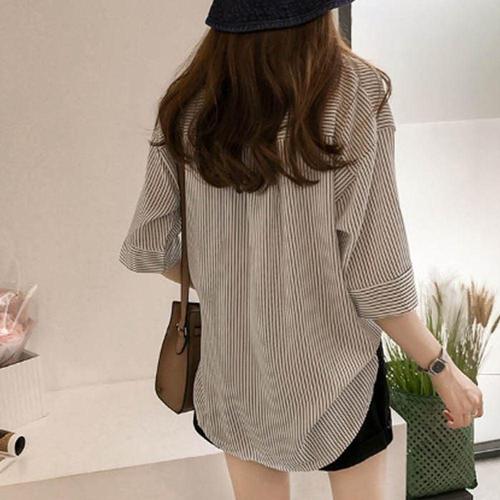 여성 블라우스 브이넥 7부 셔츠 세련된 스트라이프 (WFK84P3)