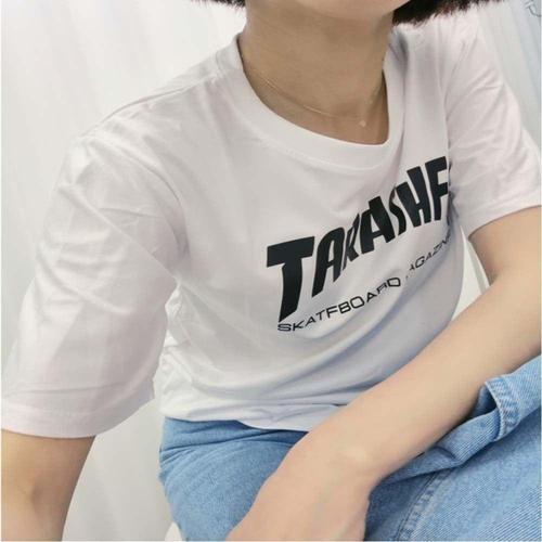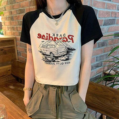 프린팅 크롭 반팔티 캐주얼 스트릿룩 여자 티셔츠