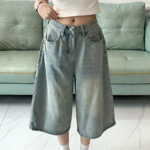 [모노무드]모노무드 여성용 데님 밴딩 반바지 스트릿룩 청바지 통 넓은 여름 바지