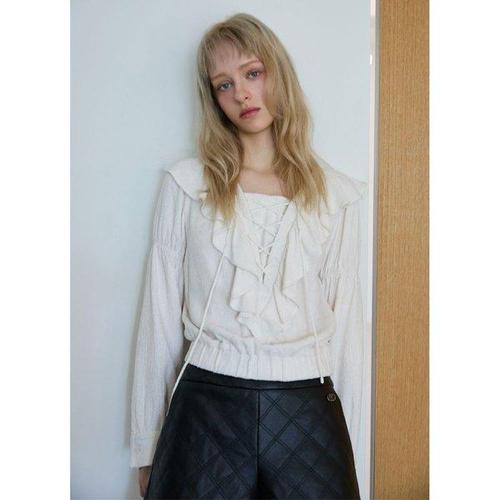 FOCUS 프릴 넥 스트링 블라우스 PBVFF5F1BL5081