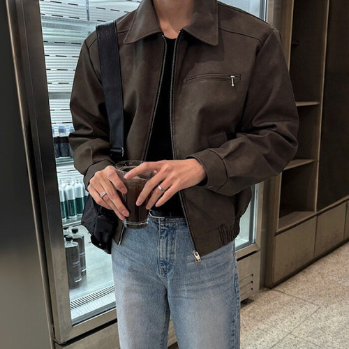 제로투올샵2 / 남성 가을 빈티지 숏 가죽 자켓 트렌디 브라운 M
