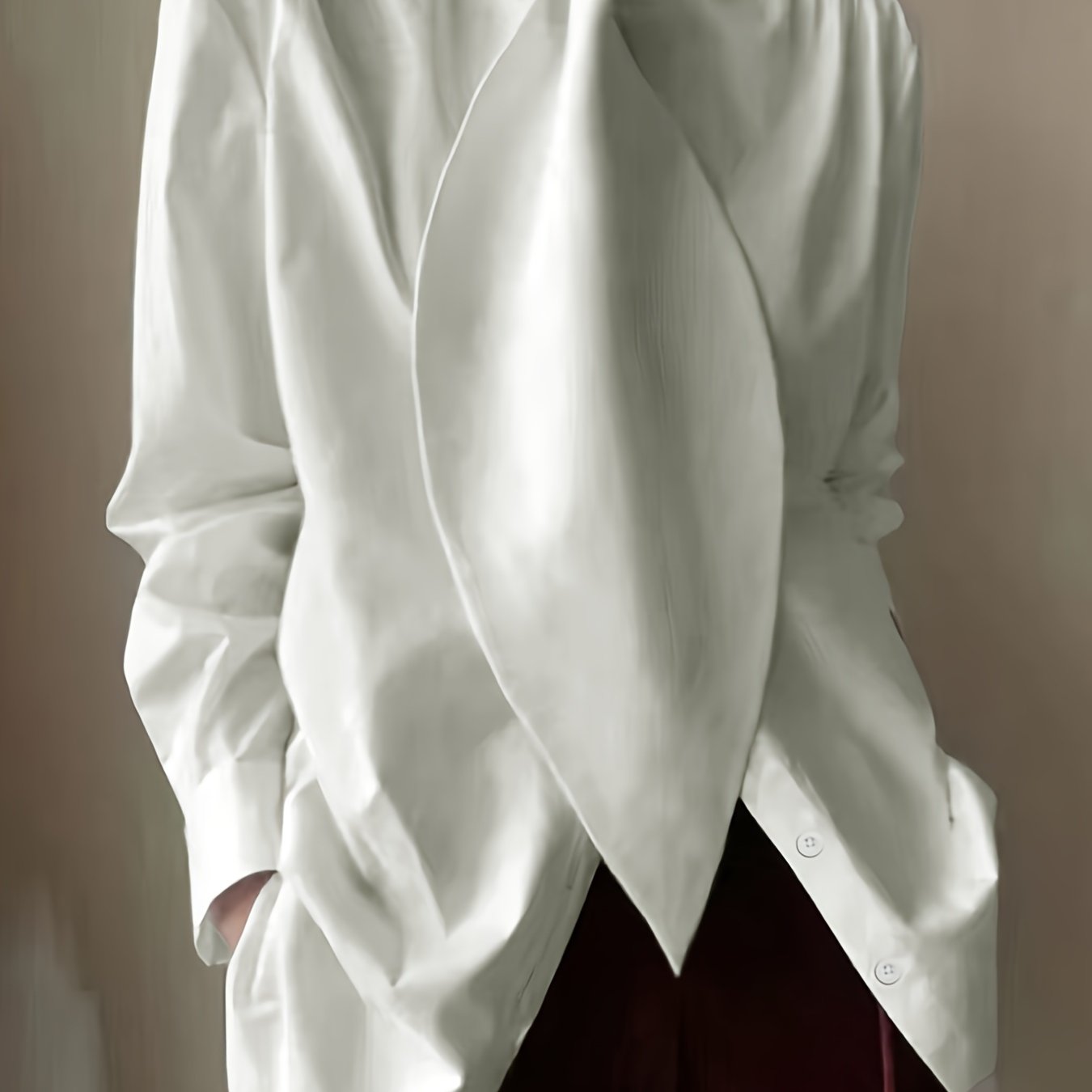 TEMU 플러스 사이즈 여성용 우아한 롱 블랙 셔츠 - 포인트 칼라 & 플레어드 헴, H라인 실루엣, 봄/가을 캐주얼&포멀 웨어, 기계 세탁 가능, 논스트레치 원단, 스타일리시 블라우스