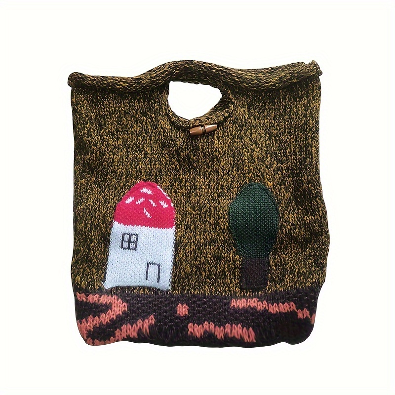 TEMU 1개 미니 버섯 집 패턴 니트 사첼 백, 가벼운 다용도 크로셰 쇼핑 핸드백