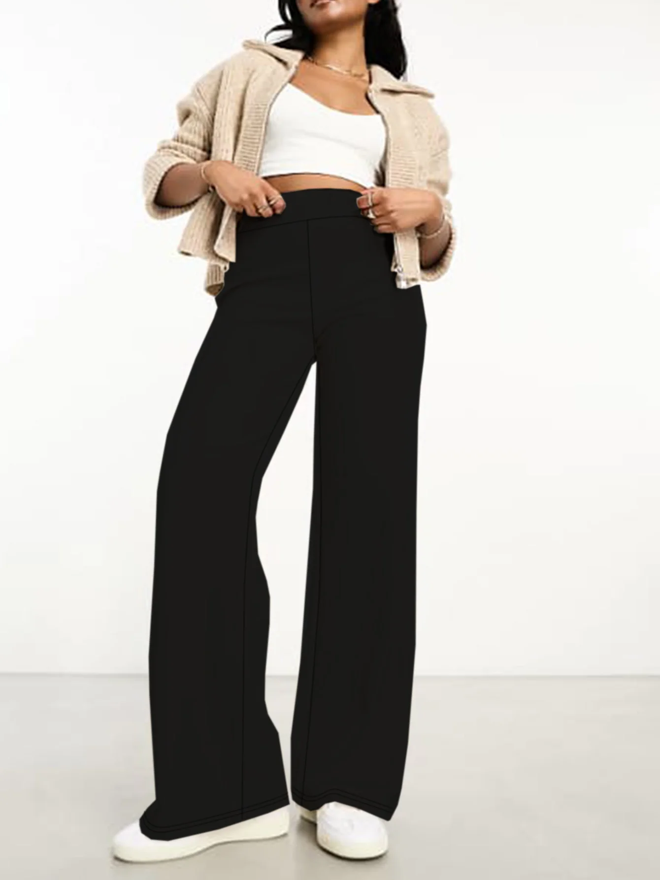 TEMU 단색 골지 나팔바지, 슬림한 하이 웨이스트 신축성 있는 바지, 여성용 의류