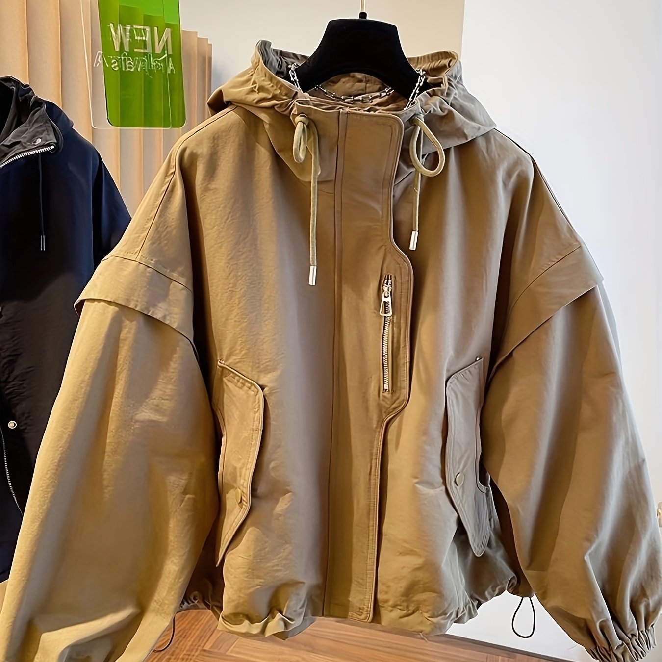 TEMU 여성 캐주얼 후드 지퍼 재킷 - 세련된 루즈핏 야구 스타일 아우터웨어, 단색, 봄 & 가을에 완벽한 여성용 재킷