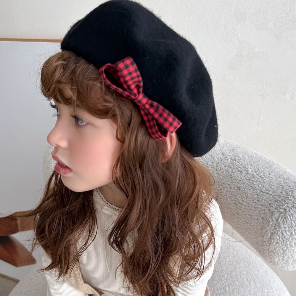 클래식 체크 베레모 니트 유아모자