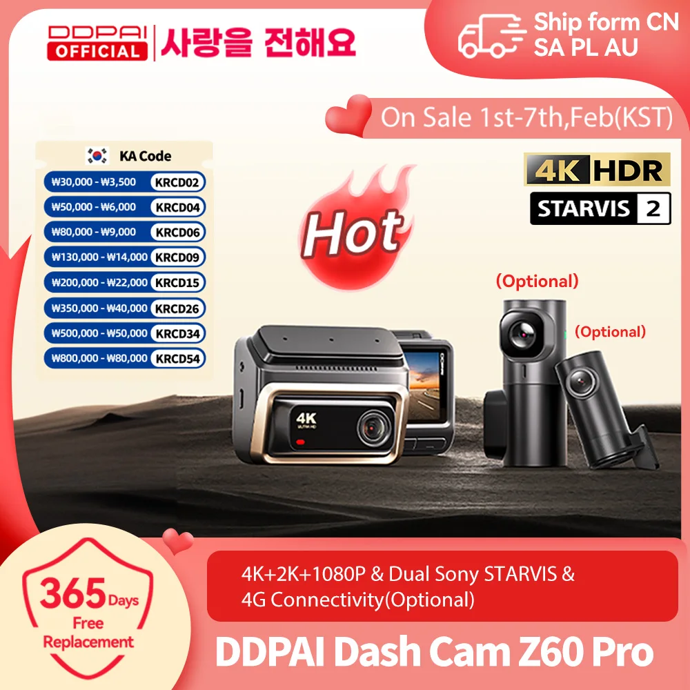 DDPAI Z60 Pro 4K 대시캠 자동차 전방 카메라 듀얼 SONY 센서 WiFi ADAS 야간 시야 DVR 비디오 레코더