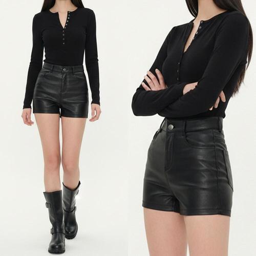 [센트럴몰]레더 하이웨스트 글로시 숏팬츠 스판
