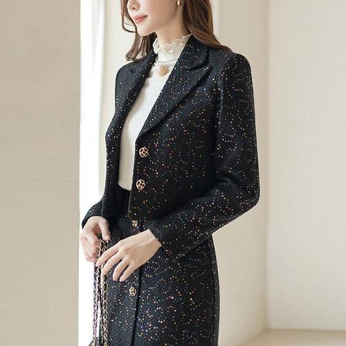 (~XXL까지) 페스타 진주버튼 스팽글 트위드 셋업 자켓 하객룩 모임룩 연말룩 겨울코디 30대 40대 50대