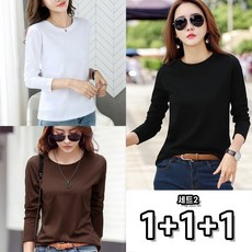 1+1+1 3종세트 여성 라운드 무지 긴팔 티셔츠 심플 기본핏 이너티 간절기 긴팔티 3p 100KG까지