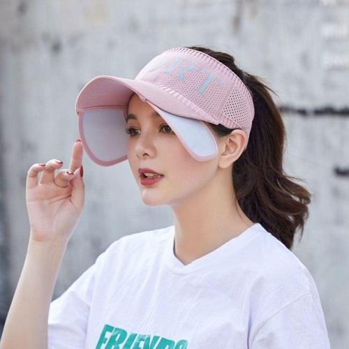 여성 스포츠 여름 자외선 차단 신축성 로고 기본 썬캡