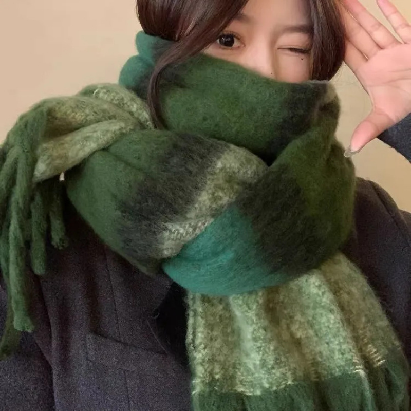TEMU 고급스러운 그린 스카프 | 태슬 장식의 우아한 겨울 숄, 부드럽고 따뜻한 긴 목 따뜻이, 추운 날씨에 적합, 손세탁 가능, 여성 및 패션 애호가에게 이상적, 성숙한 스타일, 손세탁 관리