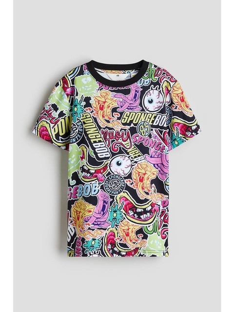 [에이치엔엠] 프린트 코튼 티셔츠 블랙/스폰지밥 1296336016