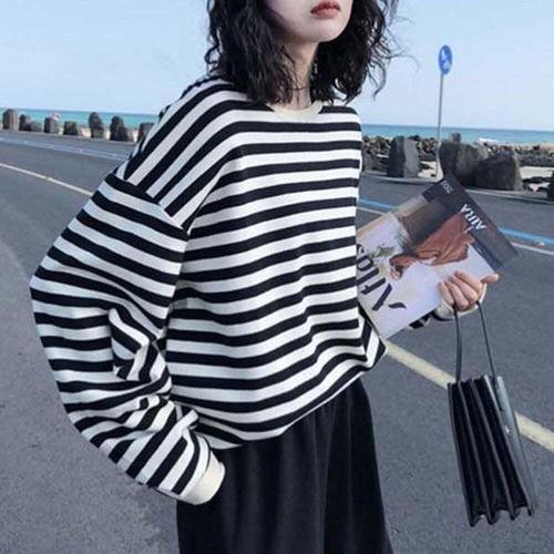 [셀러허브_여성트랜드패션]라운드넥 스트라이프 긴팔티 줄무늬티 라운드넥티셔츠 맨투맨 기모긴팔티
