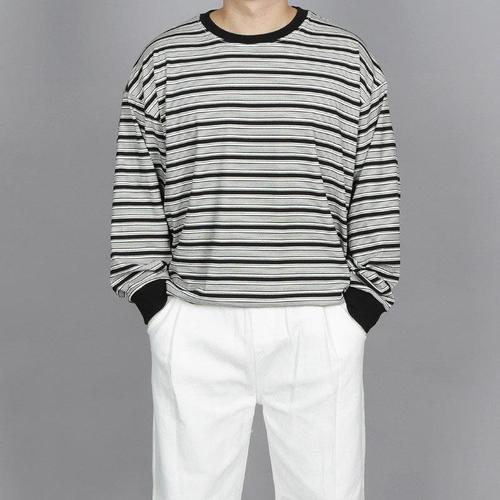 손오천 남자데일리룩 긴팔티 맨투맨 긴팔 라운드 캐주얼 가을 스트라이프 크랙 키작남 티셔츠 KUK3 투톤