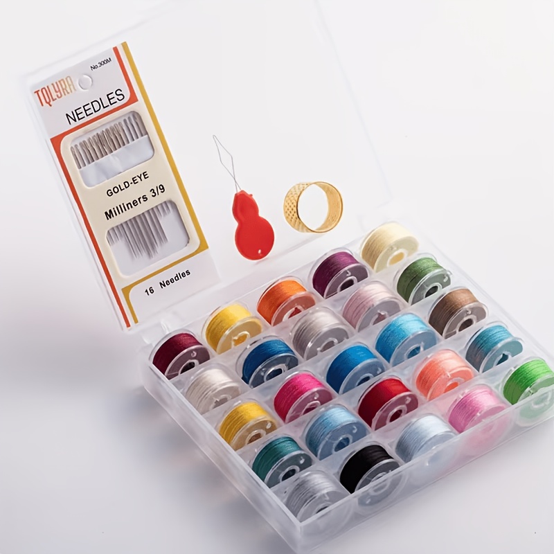 TEMU 25가지 다양한 색상의 실, 재봉틀 실, 가정용 바늘, 손바늘, 손톱 보호대 및 바늘실이 들어있는 상자. 수공예 및 재봉틀 세탁 의류에 적합합니다.