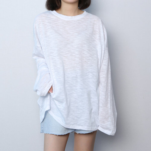 후암마켓 여자 오버핏 라운드 밑단 옆트임 기본 스판 긴팔티