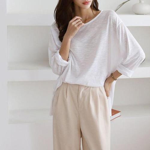 안다로미 여성용 심플 슬라브 8부 티셔츠