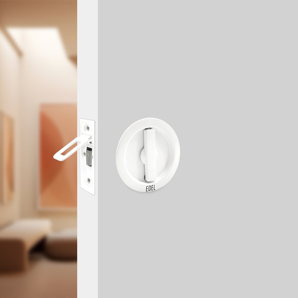 EDEL 원형 슬라이딩 도어락 화이트 미닫이문 포켓도어 락기능 고구찌 매입 손잡이 DL10