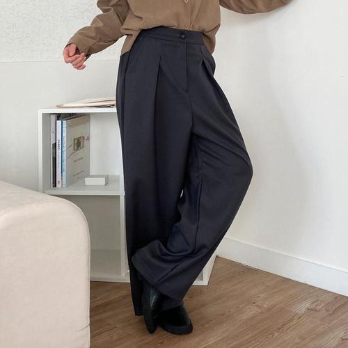 (~XXL까지)(기장선택) 제니언 하이웨스트 핀턱 와이드 슬랙스 가을 오피스룩 모임룩 격식룩 빅사이즈