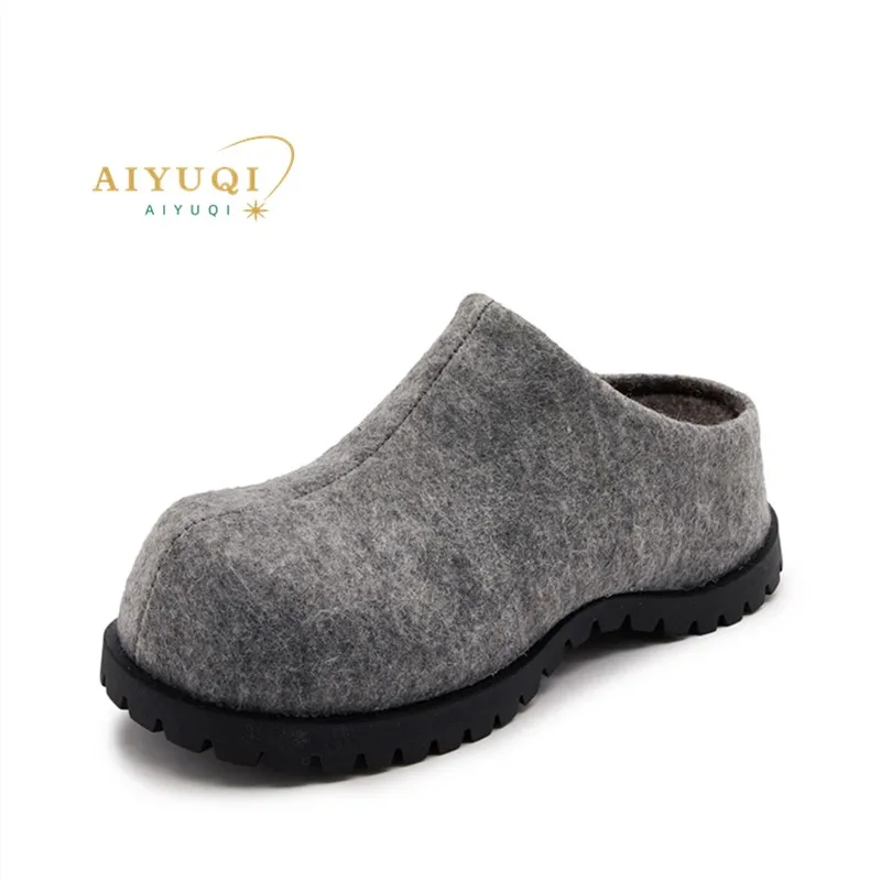 AIYUQI 여성 슬리퍼 착용 새로운 2025 가을 라운드 발가락 플란넬 클로즈 발가락 여성 슬리퍼 레트로 플랫폼 슬리퍼 여성