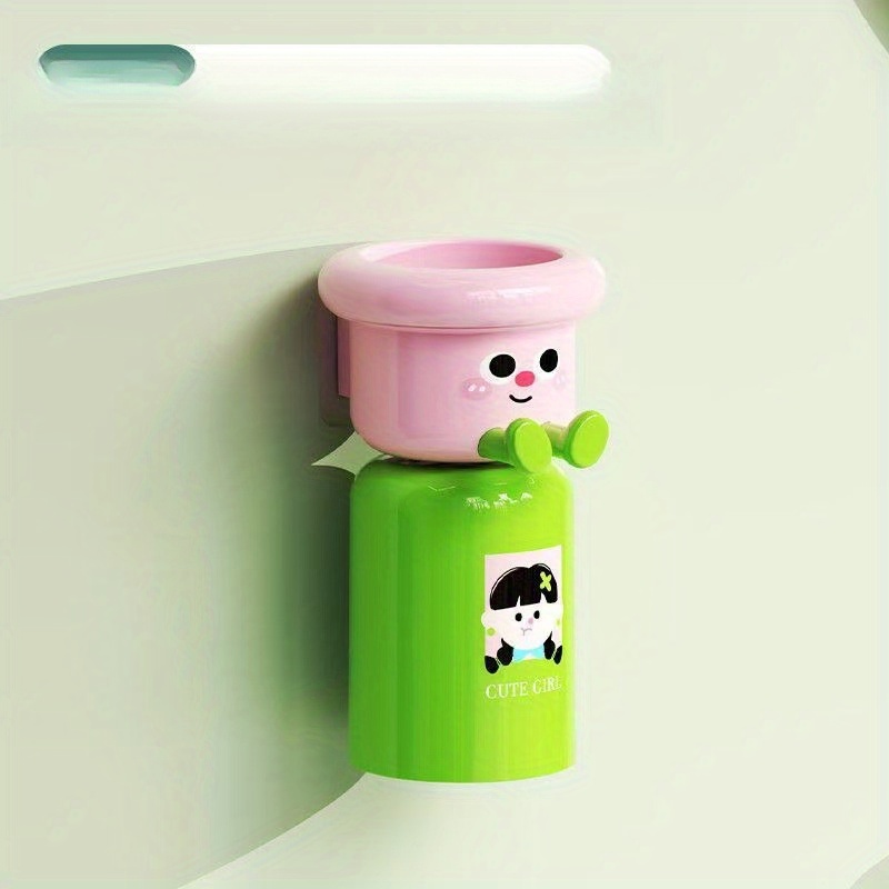 TEMU 벽에 걸 수 있는 공간 절약형 자석 컵이 있는 치실 홀더 - 치실과 입안 세척제를 위한 사랑스러운 만화 디자인, 내구성이 뛰어난 플라스틱 욕실 정리함, 전기 필요 없음, 쉬운 설치, 욕실용 치실 홀더, 재미있는 디자인, 전기 필요 없음