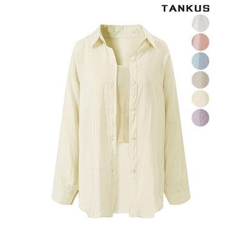[탱커스]여성 골지 나시 시스루 루즈 셔츠 셋업