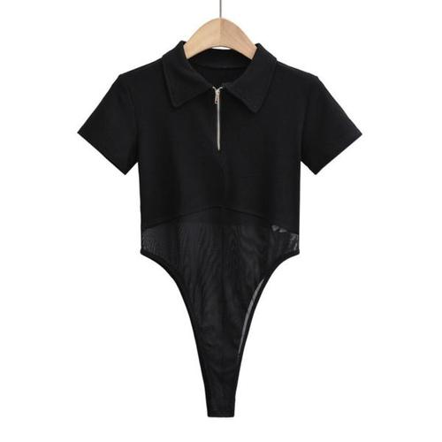 [오너클랜]인기상품 시스루 허리 트임 카라 반집업 반팔 바디수트 [WD8A338_250917]