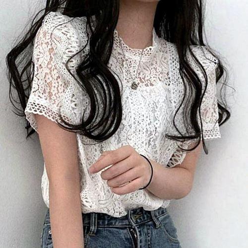 [리빌모아]여자 시스루 레이스 반팔 블라우스 LDW-BLH-SSIS472-