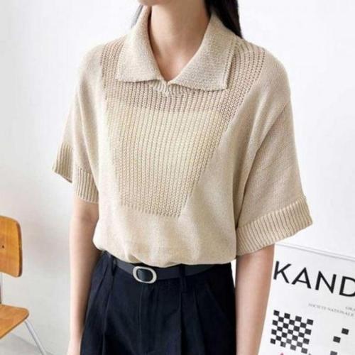 [오너클랜]인기상품 시스루 인기 언발란스 그물 짜임 카라 여름 반팔 니트 [WFGTUES_250918]