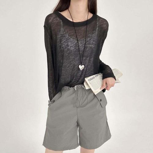 [셀럽하우스]여성 YFMV0546 시스루 커버업 비치는 긴팔 티셔츠 레이어드 3색
