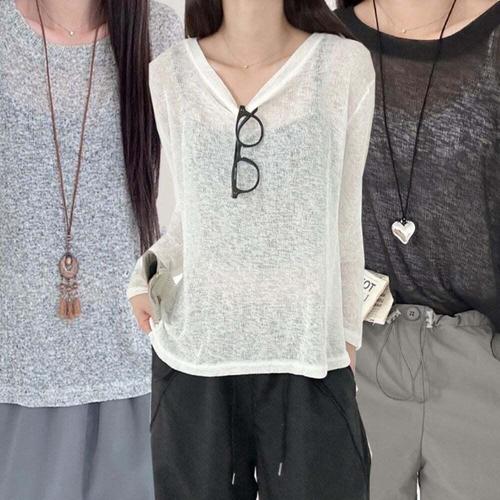 [셀럽하우스]여성 JMDK5109 3컬러 얇고 통기성 커버업 여름 시스루 긴팔티