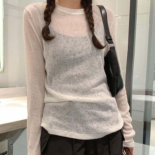 [셀럽하우스]여성 NWDY5685 3컬러 시스루 긴팔 티셔츠 라운드넥 여름 커버업