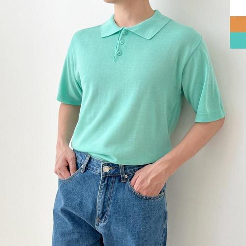 시원한 촉감 남성 카라 반팔 니트티 남자상의 하객룩
